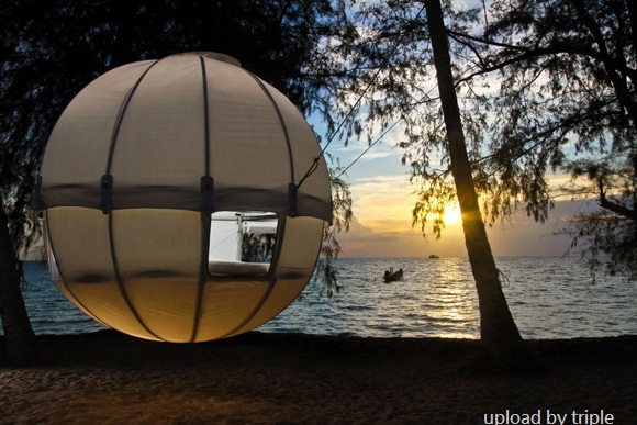 這個名為Cocoon Tree的帳篷直譯過來應該是樹之繭,但小編更覺得像剝了殼的椰子。配上這熱帶雨林碧海藍天的場景更顯得時尚有情調哈!honeymoon的時候可以考慮和他一起帶上這去聽海浪聲!生活真的可以多姿多彩,就看你腫麼活