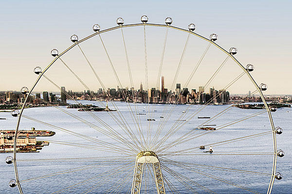 紐約市長幾個月前宣布,這座名為"The New York Wheel 紐約輪"高達625英尺,即將建造在紐約的Staten Island,並於2014年動工、2015年底完成開幕。推廣當地區域的旅遊人潮,此摩天輪將會有36個大型座艙,每個座艙可以容納約 40個人。