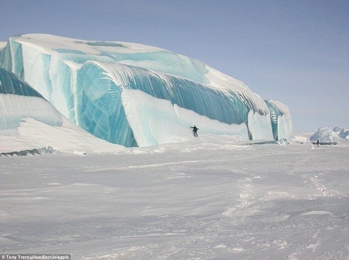 法國科學家東尼(Tony Travouillon)最近在南極洲拍到「藍光冰浪」,它是一個從冰凍的海面上凸起約15公尺高的冰塊,壯觀得猶如「寶石護盾」般。特別的是,藍色光浪並非海嘯結冰而合,而是新冰層年復一年擠壓下面的冰層,擠出裡面的氣泡後形成的自然現象。