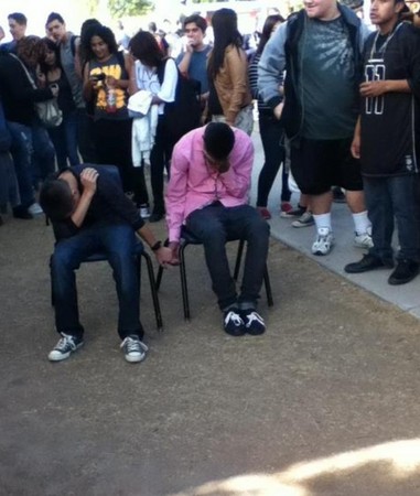 美國亞利桑納州梅薩市(Mesa, Arizona)的韋斯特伍德高中(Westwood High School)最近爆紅,原因出自上周的一項處罰──兩名男學生在體育課打架,校長理查(Tim Richard)給他們兩個選擇,被罰停課9天?還是公開在操場上手拉手1小時?