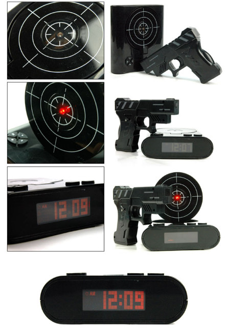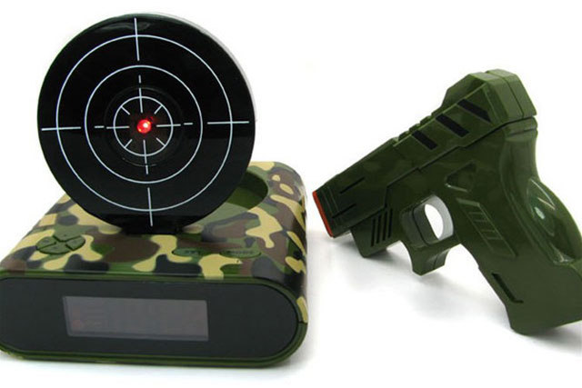 對於早上喜歡賴床的人來說,不論你設定了多少個鬧鐘要叫他起床,他還是很有可能會把這些鬧鐘通通關掉然後繼續賴床,甚至耳朵就會像是有選擇性失聰一樣,無論鬧鐘怎麼吵鬧都會聽不到。而為了能「制服」這些難搞的賴床控,市面上出現了各種創意鬧鐘,有的爆開後要重新組合才不會鬧、有的要正確算出算術題才可以讓鬧鐘安靜、甚至還有時間一到就會到處亂跑的鬧鐘.........但這些都沒有這款打手槍鬧鐘來的酷!想歪的人請先去面壁再回來往下看。