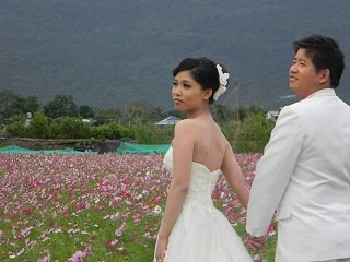 在台11丙線11-16公里,壽豐農會種植的波斯菊花田已經陸續盛開,雖然天氣涼颼颼,卻有新人不畏寒冷,特別到燦爛花海中拍攝婚紗照片,只看到新郎新娘冷的發抖,看到眼前美景還是露出興奮的笑容。
