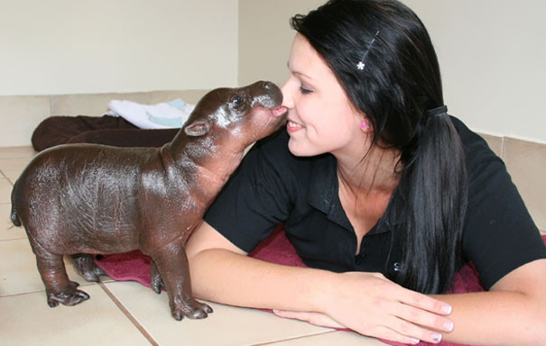 完全等比例縮小的河馬寶寶!黝黑發亮的皮膚與招牌大開的雙顎都因為小巧而變得可愛討喜許多,但在河馬媽媽巨大身軀的保護下,應該是不允許任何生物靠近的囉!