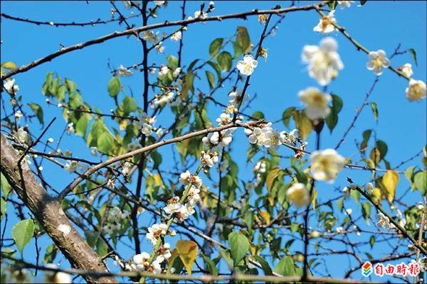 〔自由時報記者黃佳琳/六龜報導〕連續幾波寒流南下,濕冷的氣候讓高山再度降下瑞雪,高雄山區雖然下雪機會不大,但寶來竹林地區的梅花已綻放,白色花朵恰似雪花片片。茂管處寶來遊客中心表示,元旦假期預估還有一波寒流來襲,屆時梅花可完全綻放,歡迎民眾上山泡湯兼賞梅。