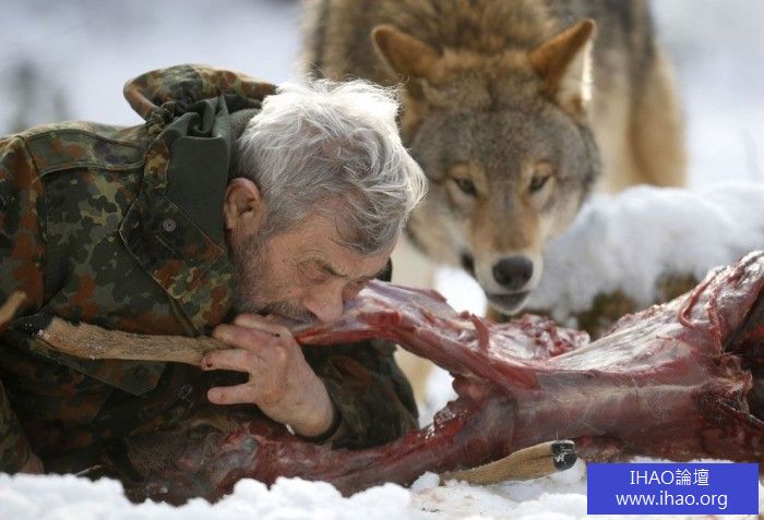 德國薩爾州的79歲男子佛羅因德堪稱不折不扣的「狼人」。1972年,他創建了一個狼群保護區。自那時起,他共飼養過70餘隻各種品種的狼。為了確立自己在狼群中的領袖地位,他堅持有肉自己先吃,然後才允許狼吃。就這樣,他成了「狼王」,狼群不但不會攻擊他,而且聽命於他。