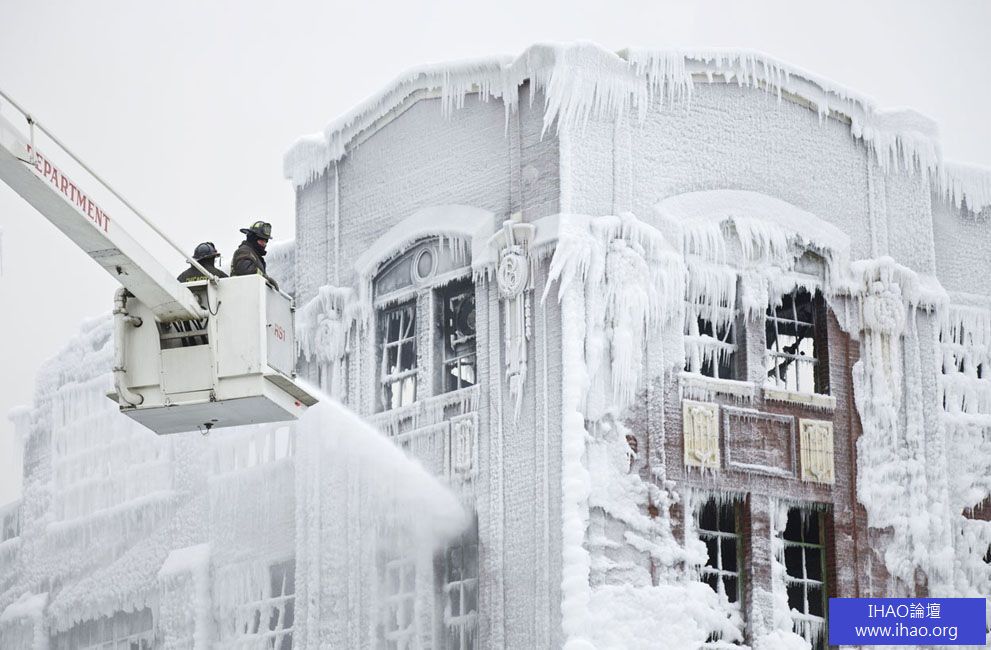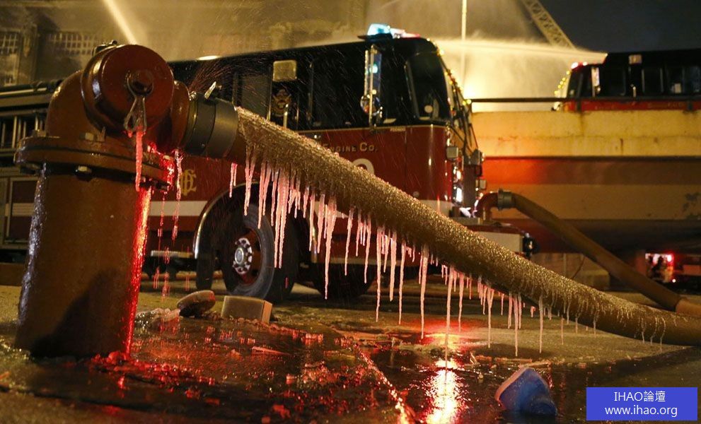 2013年1月23日芝加哥消防隊在零下10幾度氣溫下打火奇景
