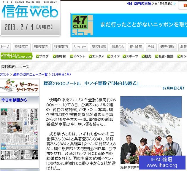 在台中市五權國中當自然老師的翁梓育說,主辦單位很貼心準備類似「暖暖包」的腰帶。只是穿傳統和服要配木屐、草履,白襪實在單薄,擋不住零下十度的低溫。他說,「身體暖和,但手腳凍僵了。」幸好沒滑倒。另一對新人王世傑、吳茗軒去年底參加台中市聯合婚禮後,連續抽中泰國及日本旅遊,直呼自己是幸運夫妻。