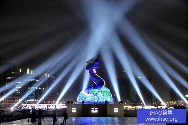由於五大燈區現場也在輪流試燈中,因此現場燈光熠熠,有人一度還誤以為台灣燈會提早登場了,了解湊巧碰上主燈試燈後,直嚷要去買樂透,居然幸運搶先看到主燈秀。