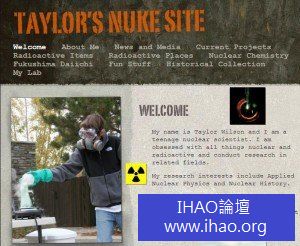 威爾森在自己架設的「泰勒的核能站」(Taylor’s Nuke Site)上如此自我介紹,「我的名字是泰勒‧威爾森。我是名青少年核能科學家。我對所有與核能、放射性及導體相關領域的研究感到著迷。我研究的興趣包含應用核能物理與核能發展史。」