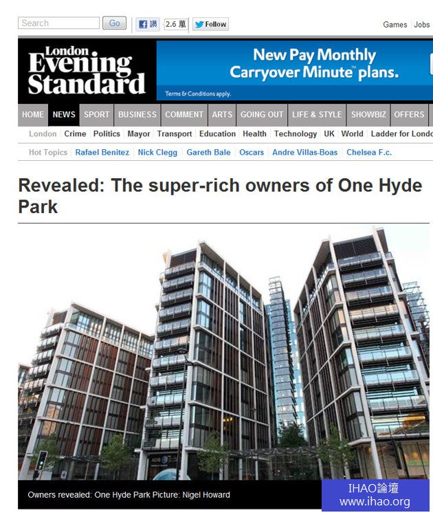 記者:「全球最貴的住宅,就算是1房的單位,在海德公園1號裡頭要價1千萬美元,如果你想要這4棟其中1棟的頂樓閣樓單位,要花掉2億2千萬美元。」