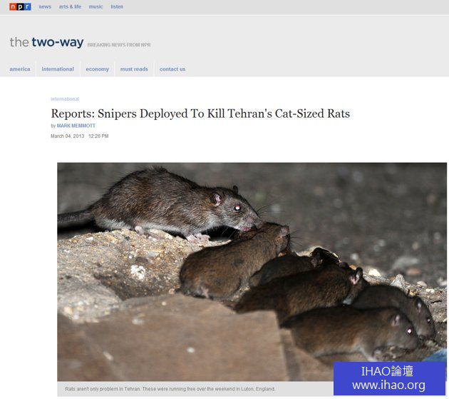 據美國有線電視新聞網3月5日報導,伊朗首都德黑蘭巨鼠泛濫成災,為了滅鼠,當地政府甚至出動了神槍手。