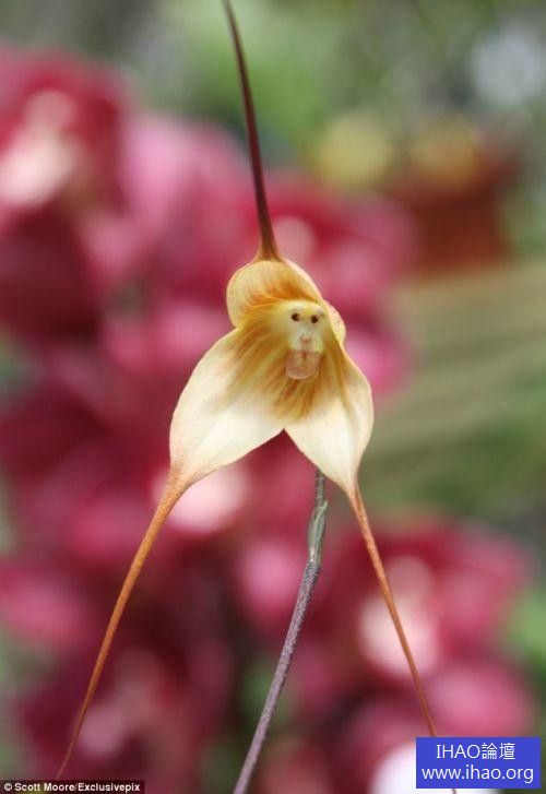 南美洲有一種長得很像猴臉的蘭花,1978 年被智利植物學家魯艾爾 (Luer) 取名叫「猴面小龍蘭」(Dracula simian) - Dracula 意為「小龍」(little dragon)。這種蘭花生長在祕魯和厄瓜多東南方海拔 2 千公尺高,終年被雲霧環繞的森林裡,沒有特定的開花季節,花香聞起來像熟透的橘子。