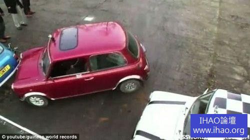 即使是技術嫻熟的駕駛人,平行停車也不是一件容易的事。這對英國兄弟駕駛著車身小巧的「Mini Mayfairs」汽車,在攝影師和金氏世界紀錄公證員的見證下,展現漂移停車絕活。按照規定,駕駛人要一口氣將汽車停進空位,停車的過程中不能擦碰撞前後的車輛,也不能觸及旁邊的白線,才算挑戰成功。