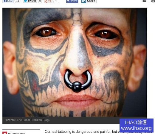▼眼睛刺青的過程,膽小勿看!(此影片為Youtube,若遭疑除請見諒)
