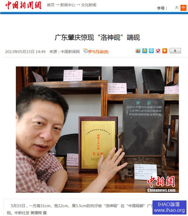 肇慶市端硯協會秘書長王建華指出,一方集魚腦凍、蕉葉白、天青、火捺兼於一體的石品,被古人稱為「蕩」。他稱「洛神硯」呈「天人合一」,雕工既遵循了古今工藝美術之「道」,又有潛在的收藏升值空間。