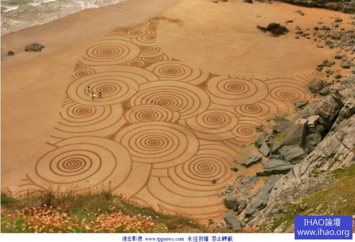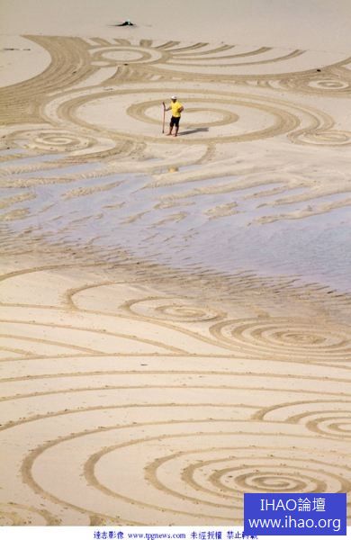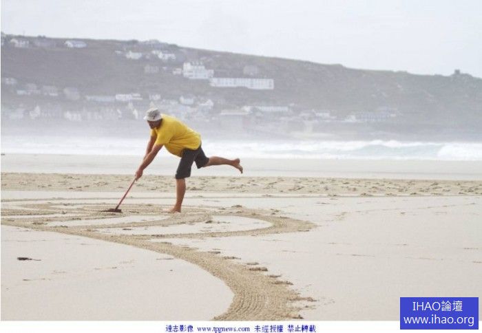 藝術家Tony Plant只用一把耙子,在沙灘上「耙」出令人驚嘆的圖案,