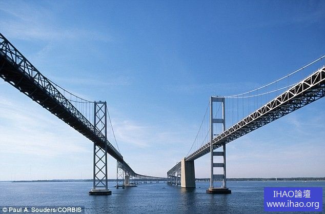 據環球網報導,威廉·普雷斯頓紀念大橋,亦稱海灣大橋,位於美國馬里蘭州,橫跨契沙比克灣。大橋橋身長5英里(約合8047公尺),最高點達到186英尺(約合56.7公尺)。