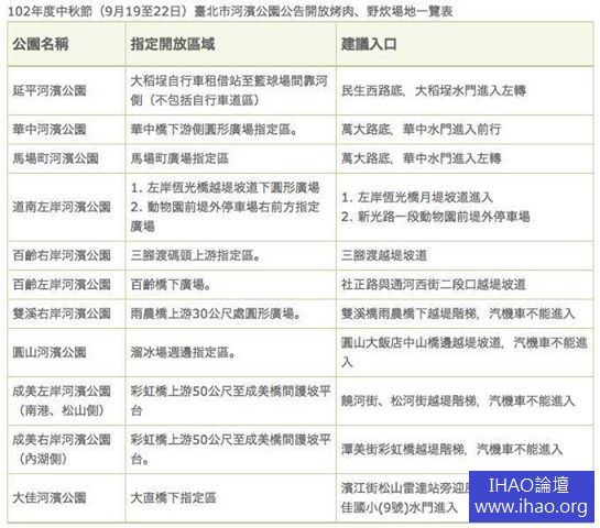 » 台北市 11處河濱公園於4天中秋假期開放烤肉!