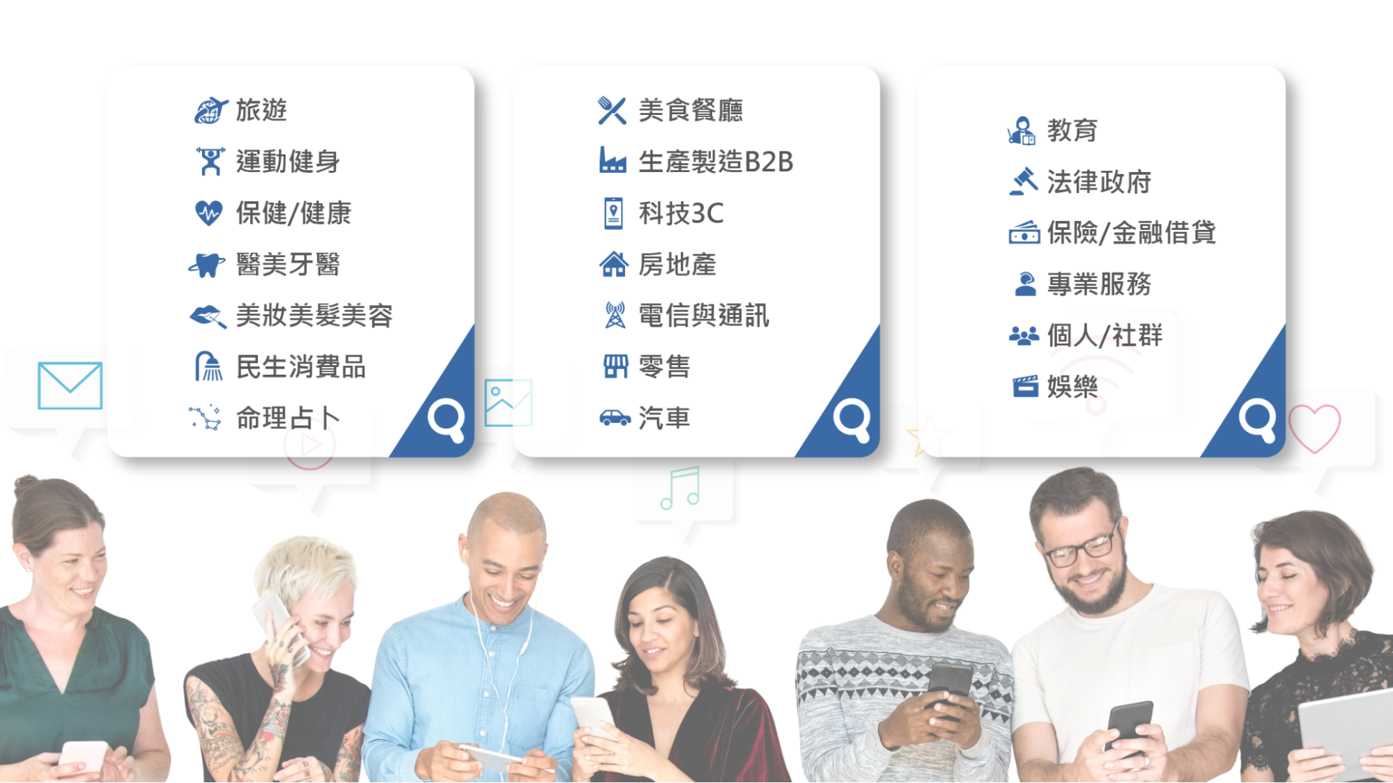 我們秉持以數據為基礎,創新為本的經營理念,不斷創新變革。透過長達10年的網路行銷經驗,累積超過30,000的客戶,研發精準受眾包,將50種以上不同的產業濃縮成20大類產業,包含教育、保健/健康、個人/社群、運動健身、娛樂、命理占卜、保險/金融借貸、法律政府、零售、科技 3C、生產製造 B2B、美食餐廳、汽車、民生消費品、專業服務、房地產、電信與通信、旅遊、美妝美髮美容、醫美牙醫等等。